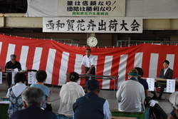西和賀花卉生産組合の髙橋文昭組合長は「花卉生産を取り巻く情勢は厳しいが、品質を落とすことなく、需要期に大量出荷できるよう頑張ってほしい」と激励しました。