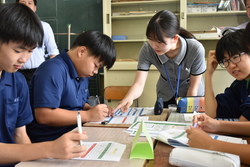 同日は、JAの金融窓口を担当する職員7人が主導となり授業を進めました。生徒たちは5つのグループに分かれ、キャベツ農家という設定でゲームをスタート。それぞれのグループで話し合いながら、これまで通りキャベツ栽培で生計を立てていくのか、作物を変えミニトマト栽培に挑戦するのかを選択し、1年ごとに費用や売り上げ金、借り入れ金などをやり繰りして、収支を算出しました。ゲームの途中では、農業経営においての豊作や自然災害、害虫被害などの不測の事態を想定した、売り上げ金アップやダウンのイベント発生もあり、生徒たちは一喜一憂しながら経営方法について考えていました。10年経営した際の収支で、所持金額が1億円に到達したグループもあり、称賛の声が上がりました。
