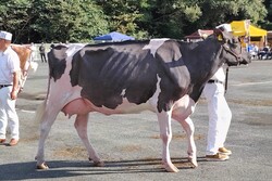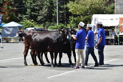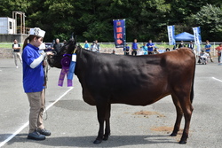 26日に行なわれたホルスタイン種の部では、佐野茂樹さん(遠野市上郷町)が6頭を出品し、第15部(経産・5歳以上6歳未満)で「プロスペリーラッキーチエンオーサム」が1等賞を受賞しました。10月25日、26日に北海道で開催される第16回全日本ホルスタイン共進会に岩手県代表で出品されます。