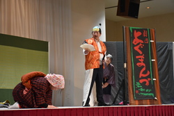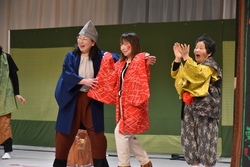 寸劇に出演した継枝理事(中央)と畑山理事(左)
