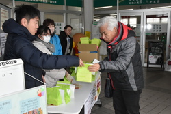 JAでは日頃の感謝を込めて各支店で「支店感謝デー」を行っています。1月20日に北上市流通センターの北上・みなみ・さくら・二子支店で行われた支店感謝デーでは、障がい福祉サービス事業所「北萩寮」が製造しているラスクを来店客にプレゼントしました。