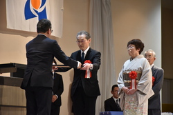 表彰を受ける佐々木さんと妻の智子さん